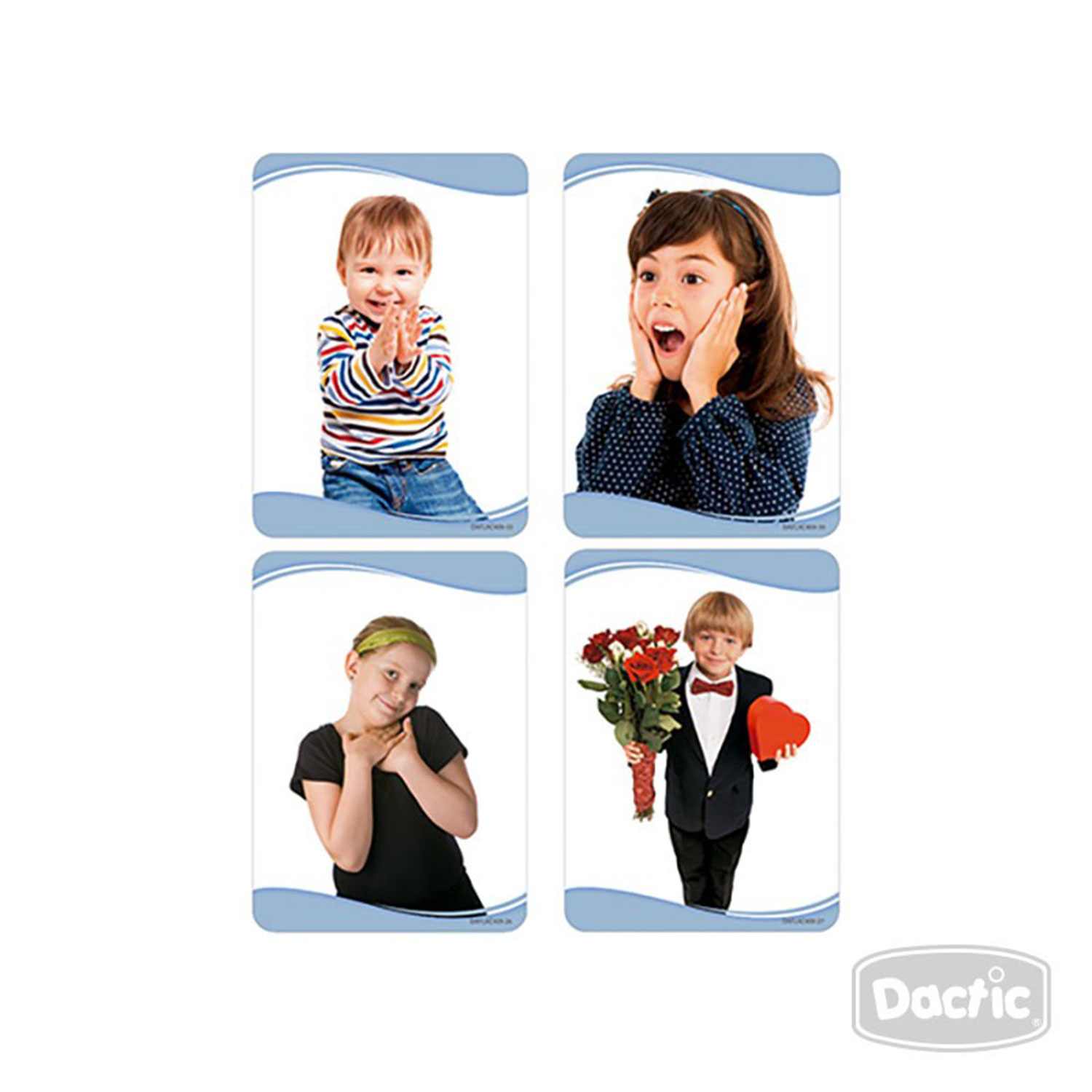 Nuestras prácticas láminas didácticas son ideales para identificar las diferentes emociones o sentimientos mediante imágenes que representan la acción en cuestión.