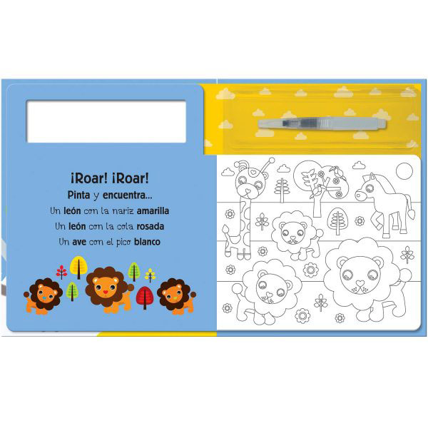 Reseña del libro: Crea coloridas imágenes de Animales con este libro para pintar con agua, luego busca y encuentra a los animales escondidos en cada página. Simplemente colorea con agua, deja secar, luego pinta las imágenes y comienza tu búsqueda otra vez.