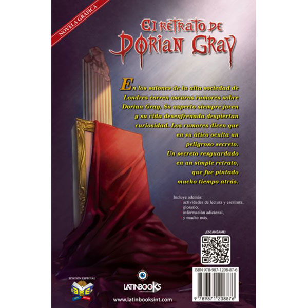 En los salones de la alta sociedad de Londres corren oscuros rumores sobre Dorian Gray. Su aspecto siempre joven y su vida desenfrenada despiertan curiosidad. Los rumores dicen que en su ático oculta un peligroso secreto. Un secreto resguardado en un simple retrato, que fue pintado mucho tiempo atrás.Las más grandes aventuras y los misterios más inquietantes de la literatura universal en un formato de comics, con alta calidad en dibujos y adaptadas por distintos autores, está orientada para incentivar la lectura en niños y jóvenes de los clásicos.Incluye además:-Actividades de lectura y escritura-Glosario-Biografía del autor-Información adicional-Y mucho más.