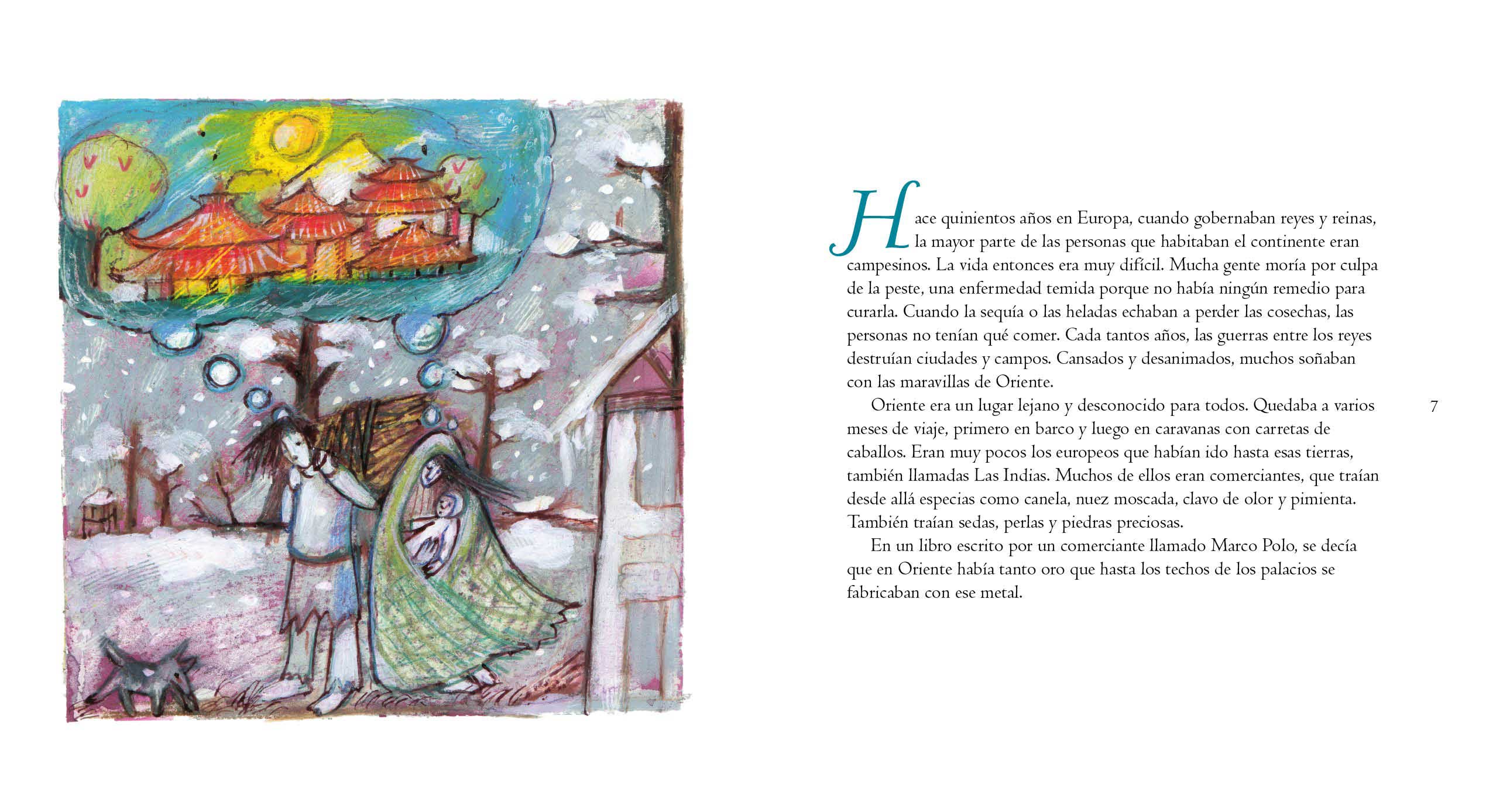 Cristóbal Colón era un navegante deseoso de gloria y aventura. Pensando y mirando sus mapas se convenció de que podía llegar a las ricas tierras de oriente navegando desde España hacia el oeste, para llevar de vuelta oro, especias y piedras preciosas.