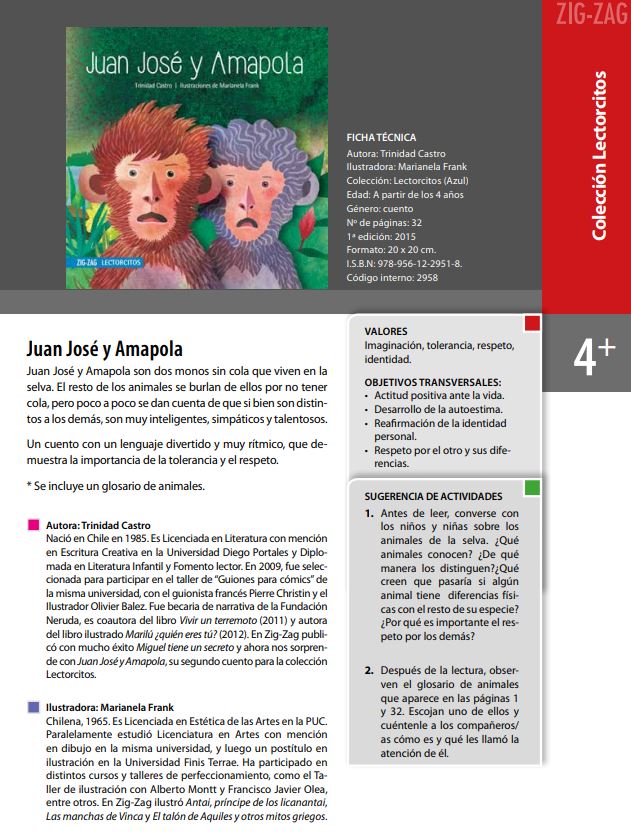 “En la selva del Amazonas, viven dos monos sin cola, el mono se llama José y la mona Amapola”. En la selva saben muy bien que una cola es un tesoro, y por tanto el resto de los animales se burla de ellos, sin aceptar que las diferencias nos vuelven únicos. Un cuento que habla sobre la tolerancia, el respeto para vivir en armonía y comunidad.