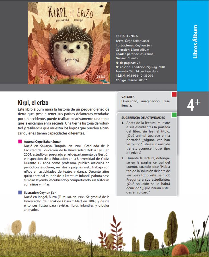 Este libro álbum narra la historia de un pequeño erizo de tierra que, pese a tener sus patitas delanteras vendadas por un accidente, puede realizar creativamente una tarea que le encargan en la escuela. Una tierna historia de voluntad y resiliencia que muestra los logros que pueden alcanzar quienes tienen capacidades diferentes.