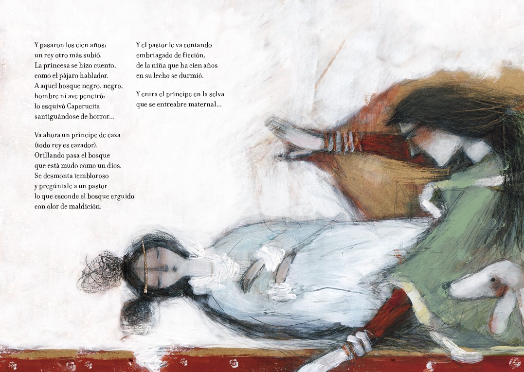 Gabriela Mistral escribe La Bella Durmiente inspirada en los célebres Cuentos de Antaño de Charles Perrault, escritos en el siglo XVII. La autora emplea un vocabulario muy rico y un lenguaje lleno de matices. Gabriela Mistral escribió esta versión en la forma del cuento de hadas versificado donde están presente la belleza y el refinamiento tan preciados en el Modernismo. Esta versión de “La Bella Durmiente del Bosque” se publicó en Colombia en el diario “El Gráfico” de Bogotá, el 14 de julio de 1928. Editorial Amanuta rescata este poema en forma de libro ilustrado por Carmen Cardemil, que acerca el cuento popular a la estética contemporánea.