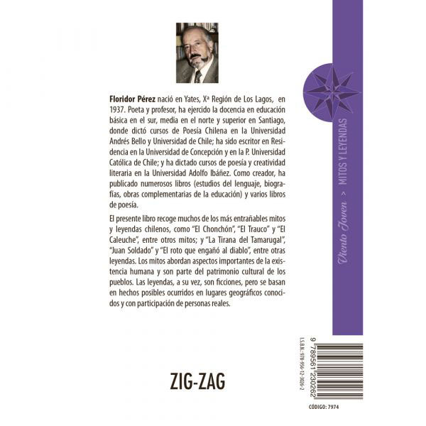 Este libro reúne los más entrañables mitos y leyendas chilenos, como “El Chonchón”, “El Trauco” y “El Caleuche”, entre otros; y “La Tirana del Tamarugal”, “Juan Soldado” y “El roto que engañó al diablo”, entre otras leyendas. Los mitos abordan aspectos importantes de la existencia humana y son parte del patrimonio cultural de los pueblos. Las leyendas, a su vez, son ficciones, pero se basan en hechos posibles ocurridos en lugares geográficos conocidos y con participación de personas reales.