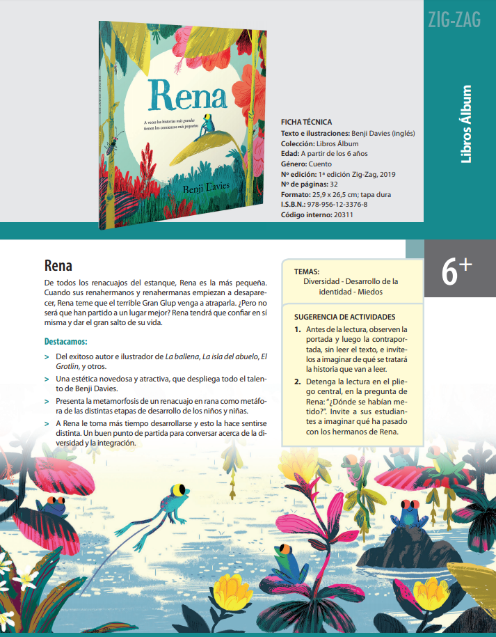 Cuando sus renahermanos y renahermanas empiezan a desaparecer, Rena teme que el terrible Gran Glup venga a atraparla. ¿Pero no será que han partido a un lugar mejor? Rena tendrá que confiar en sí misma y dar el gran salto de su vida.