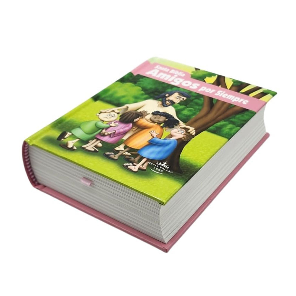 Tapa dura, plastificada y a todo color, que identifican a la Biblia como la ideal para que Jesús sea el “Amigo por siempre” de los niño.