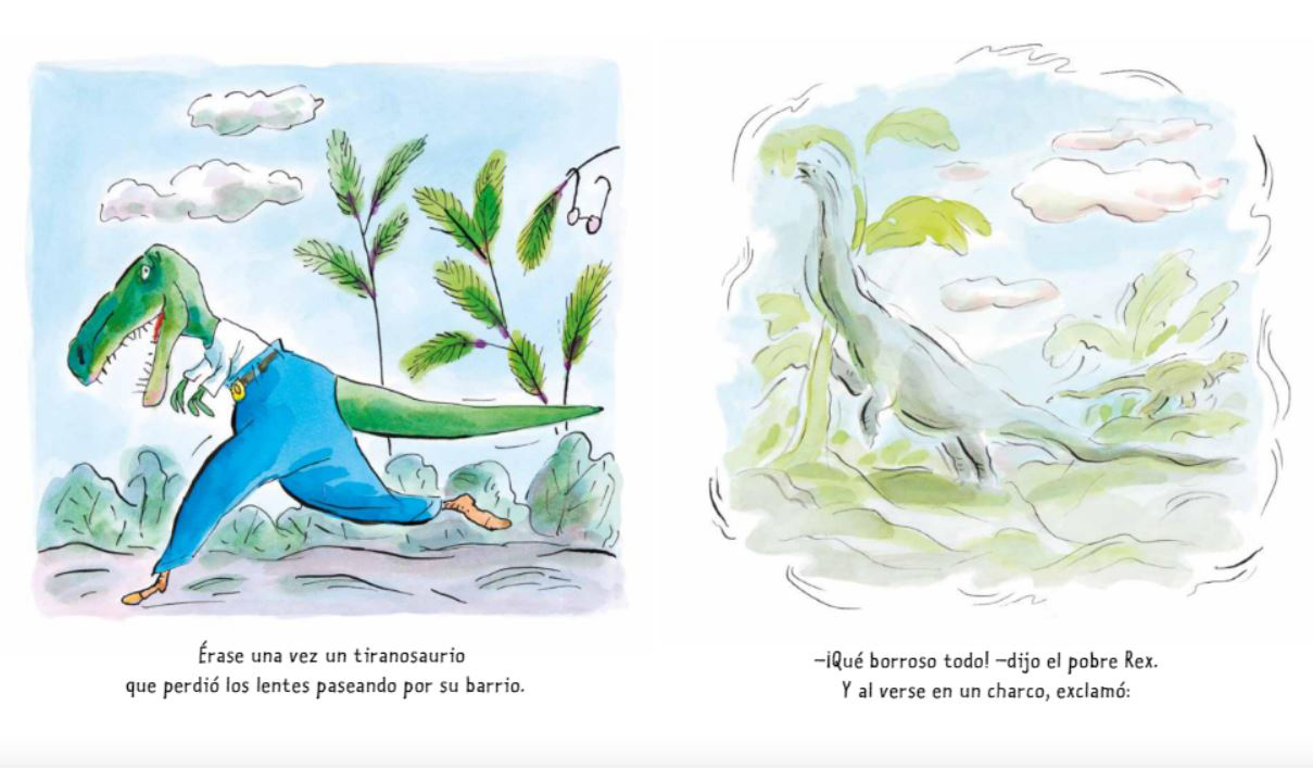 Rex ha perdido sus lentes y todo le sale al revés. Confunde tostadas con pantuflas, búhos con toallas… ¡Ya ni siquiera reconoce a sus amigos! Como no encuentre pronto sus gafas… ¡se va a meter en un buen lío!