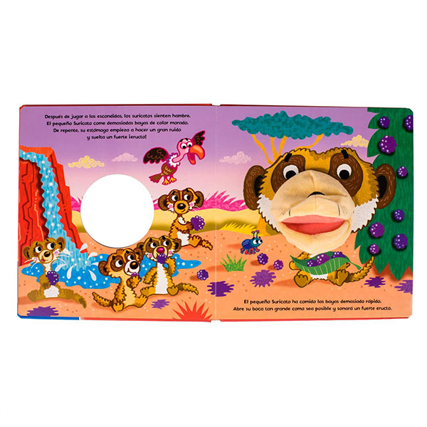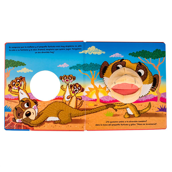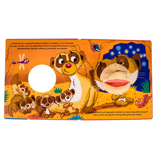 Cuando el pequeño Suricato despierta solo quiere jugar. ¡Únete a la diversión con este emocionante animal-títere! Libro didáctico y diseñado para estimular de manera lúdica la imaginación, la creatividad y la expresión oral, a través del diálogo.