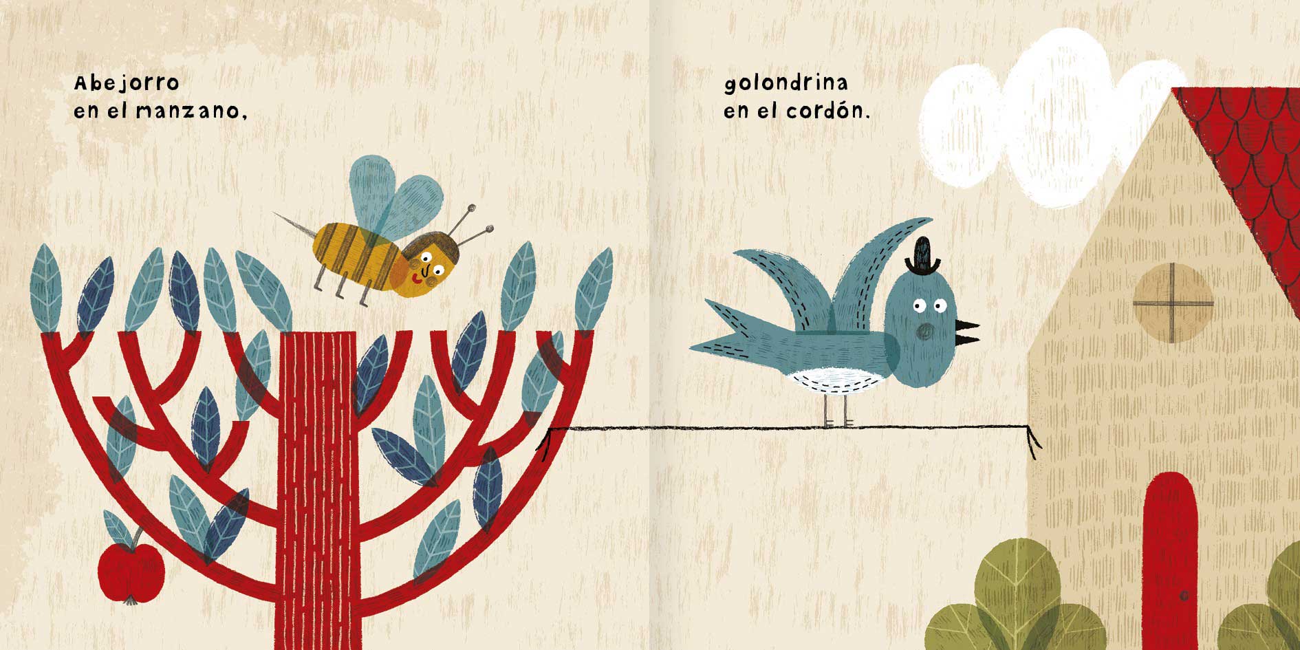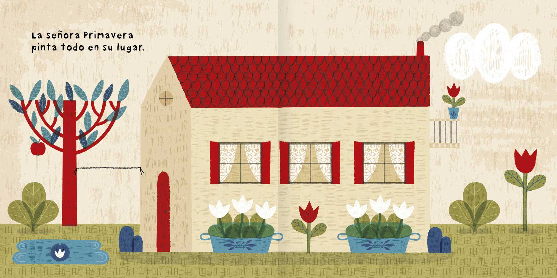 “La señora primavera pintó todo en su lugar…” Con este comienzo el libro propone a los más pequeños conocer aves, animales e insectos al relacionarlos con su hábitat. Invitándolos a descubrir todo lo que florece y aparece junto a la primavera. Un libro para leer, cantar y morder. Libros para cantar, leer, mirar y morder.