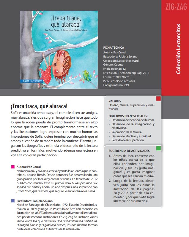 Sofía es temerosa y muy alaraca: su imaginación logra que todo lo que la rodea de pronto se transforme en algo enorme que la amenaza. Las ilustraciones expresan con humor las impresiones de Sofía, quien descubre que el amor de su madre todo lo contiene. Un cuento que estimula el desarrollo de la lectura predictiva y motiva una lectura en voz alta con gran participación.