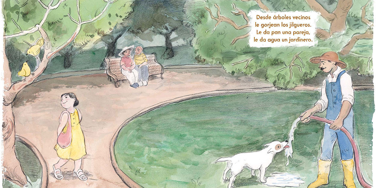 Reseña del libro: El perro Simón vive en la orilla del río Mapocho. En uno de sus clásicos paseos matutinos por el Parque Forestal, conoce a la pequeña Rafaela. Cuando ya se han hecho amigos, un perro ladrón irrumpe, se lleva la cartera de la niña y lo que era un tranquilo día soleado se transforma en una aventura entre parques, museos y mercados del centro de Santiago. Un relato que acerca a los niños al lenguaje poético de la cueca chilena, y los invita a conocer y reconocer algunos importantes hitos patrimoniales.