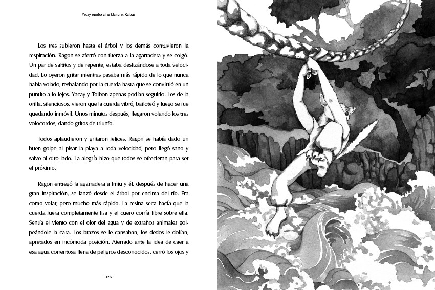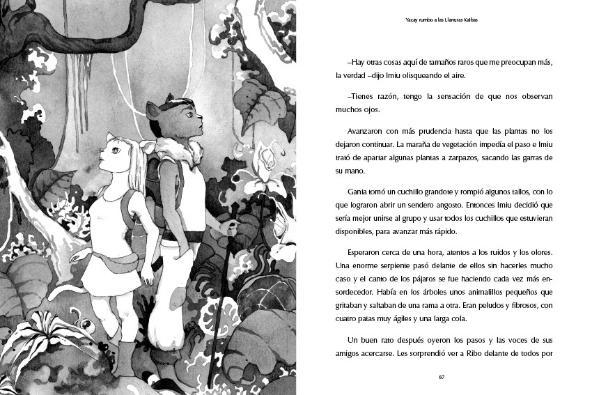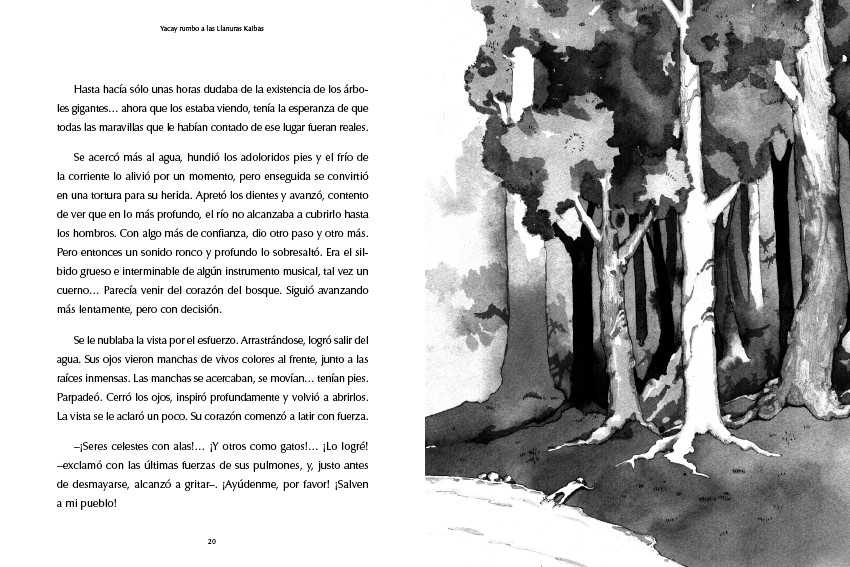 Un gigante de enormes piernas y portentosas orejas acaba de llegar al Gran Bosque, medio desmayado y pidiendo ayuda, porque los guácaros, temibles hombres-perro, están atacando a su pueblo. Después de “Yacay en las tierras del buen viento”, esta aventura es la segunda parte de la historia de un joven de piel celeste, con alas en la espalda y plumas en la cabeza.